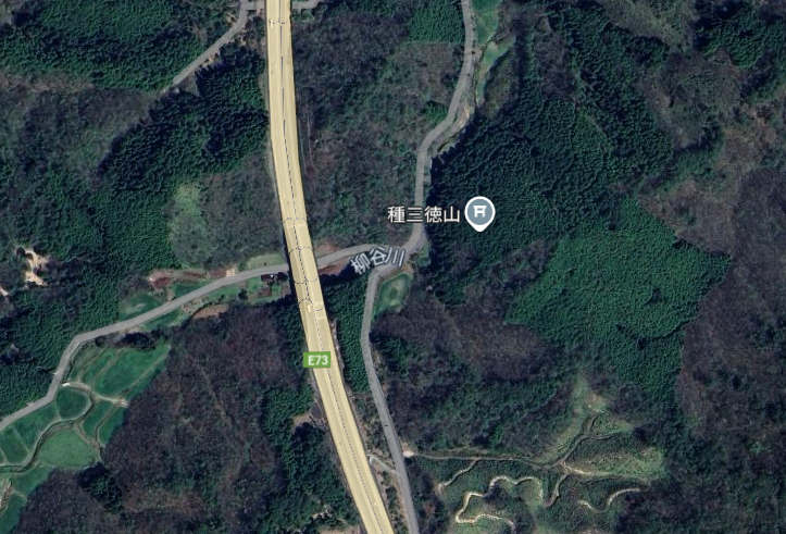 *駐車位置 三叉路 *種三徳山の説明版と登山口表示あり *説明版左の木々の奥に岩盤見えます *登山口はシダに覆われて道が見えなくなっていますが、5m先には登山道があります *6分で岩盤位置です |